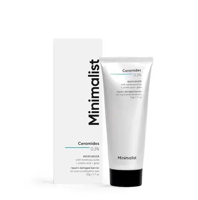 Minimalist Ceramides 0.3% + Madecassoside Moisturizer is a lightweight, barrier-repairing moisturizer that hydrates, soothes, and strengthens the skin. Formulated with 0.3% Ceramides, Madecassoside, and Oat Extract, it restores the skin barrier, reduces inflammation, and locks in moisture for long-lasting hydration.